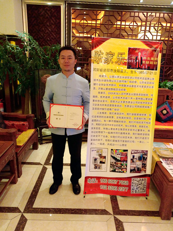感谢中国商业联合会沐浴专业委员会各位领导对山里娃养生集团技术总监陈家乐的技术认可与信赖,特聘请陈家乐老师为【中商联沐浴委技术专家委员会委员】。山里娃养生集团在党支部书记董事长郭俊超先生带领下、技术总监陈家乐培训督导下,始终坚持技术为根、服务为本、文化为魂的理念。集团始终以“传承中医文化、让人人拥有健康;为企业愿景、探索民间良方;为人类健康服务、为企业核心价值!”山里娃养生集团全体员工用最专业的手法、贴心的服务、悦耳的话术为您健康保驾护航!